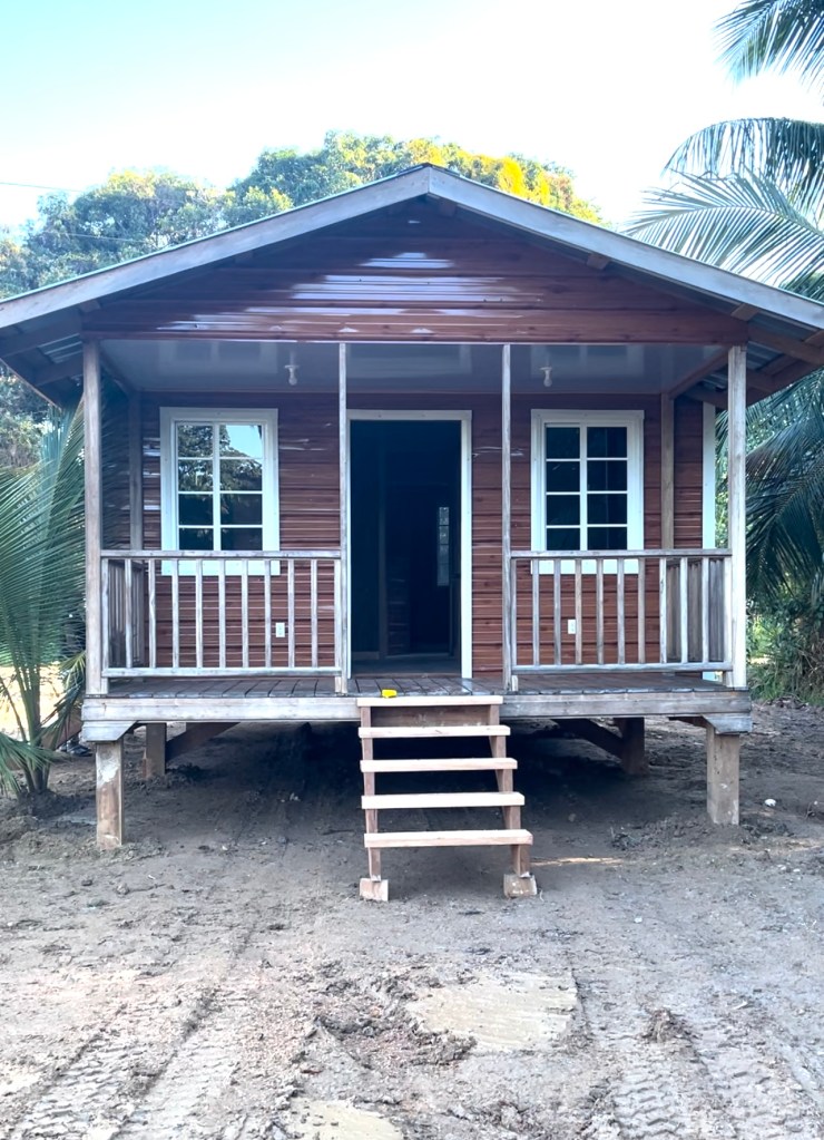 I flew down for the delivery of the house, so I could place it where I wanted it to be located on the land. The problem is, much like everything in Belize, the weather is unpredictable. It has been the rainiest year in two decades, and although we had our land filled, it was/is still very much a swamp. That didn’t seem to phase the Mennonite builders, so we kept the plan in place.